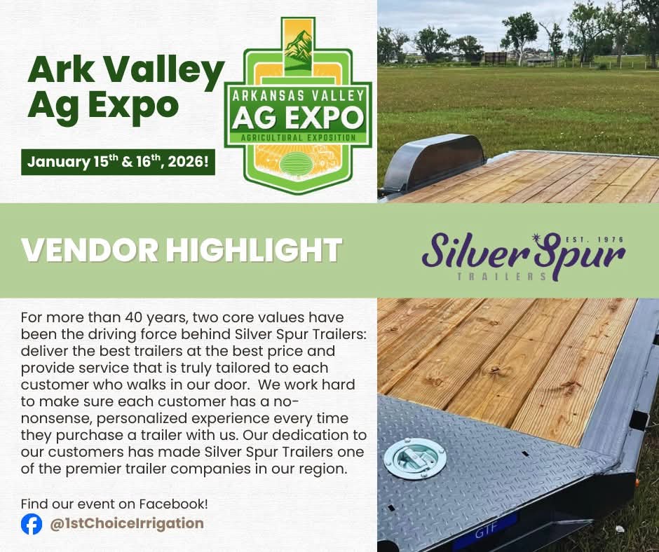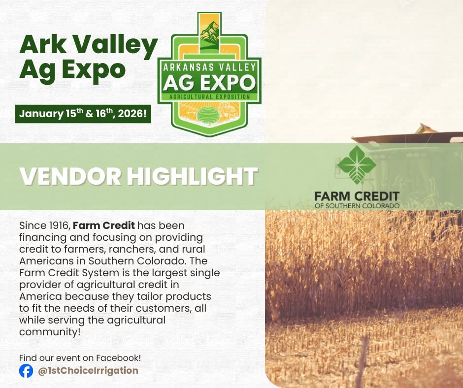 Join the People of Southeast Colorado as 1st Choice Irrigation Hosts the 2nd Annual Arkansas Valley Ag Expo on January 15 & 16 from 9:00AM - 4:00PM in Rocky Ford Colorado...