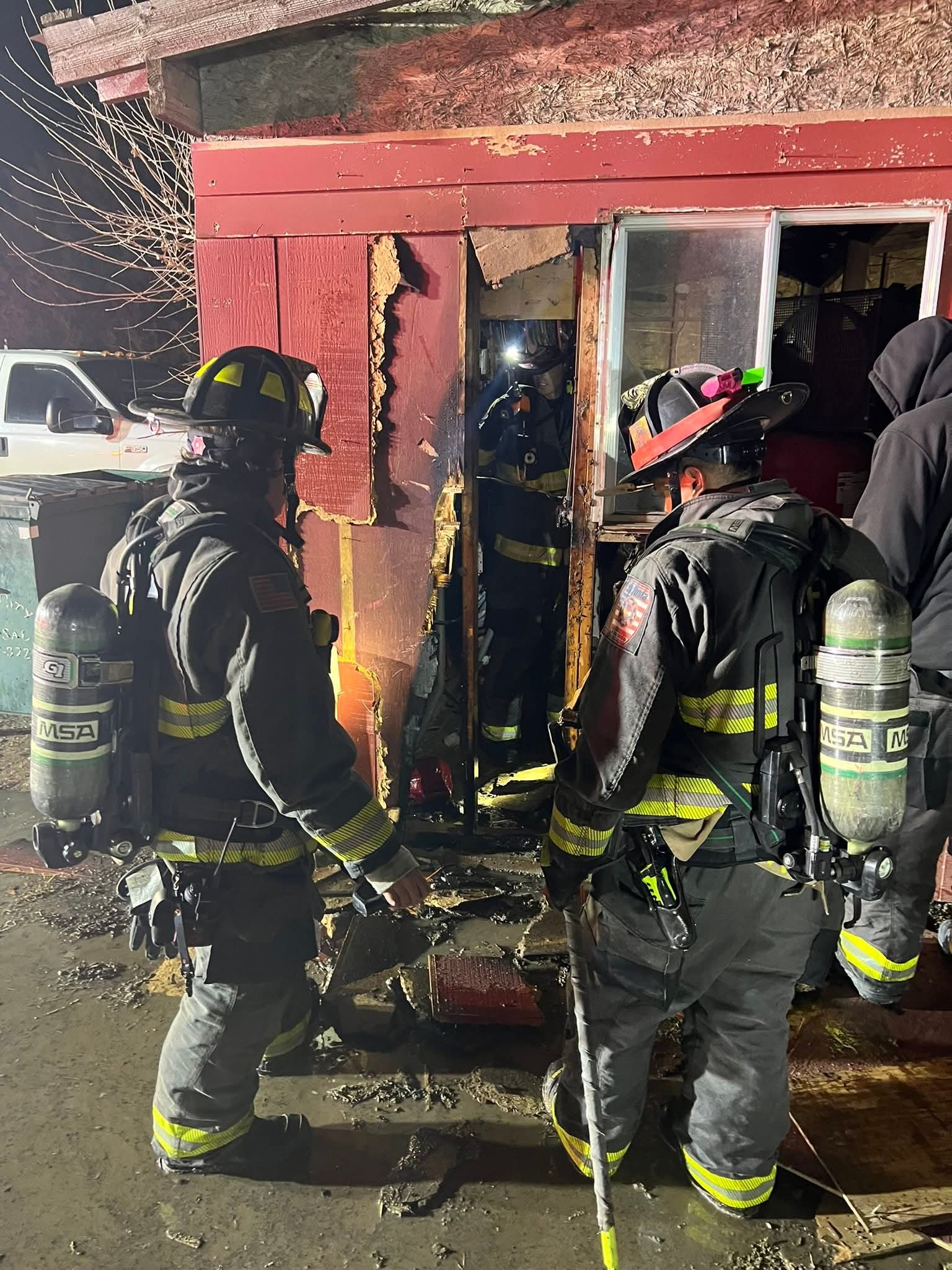 Crew used a 1 3/4” hand line to knock down the fire. Crews then began overhaul to make sure of no further fire spread. Crews had to pull off the siding and work on the inside of the wall to full extinguish the fire.