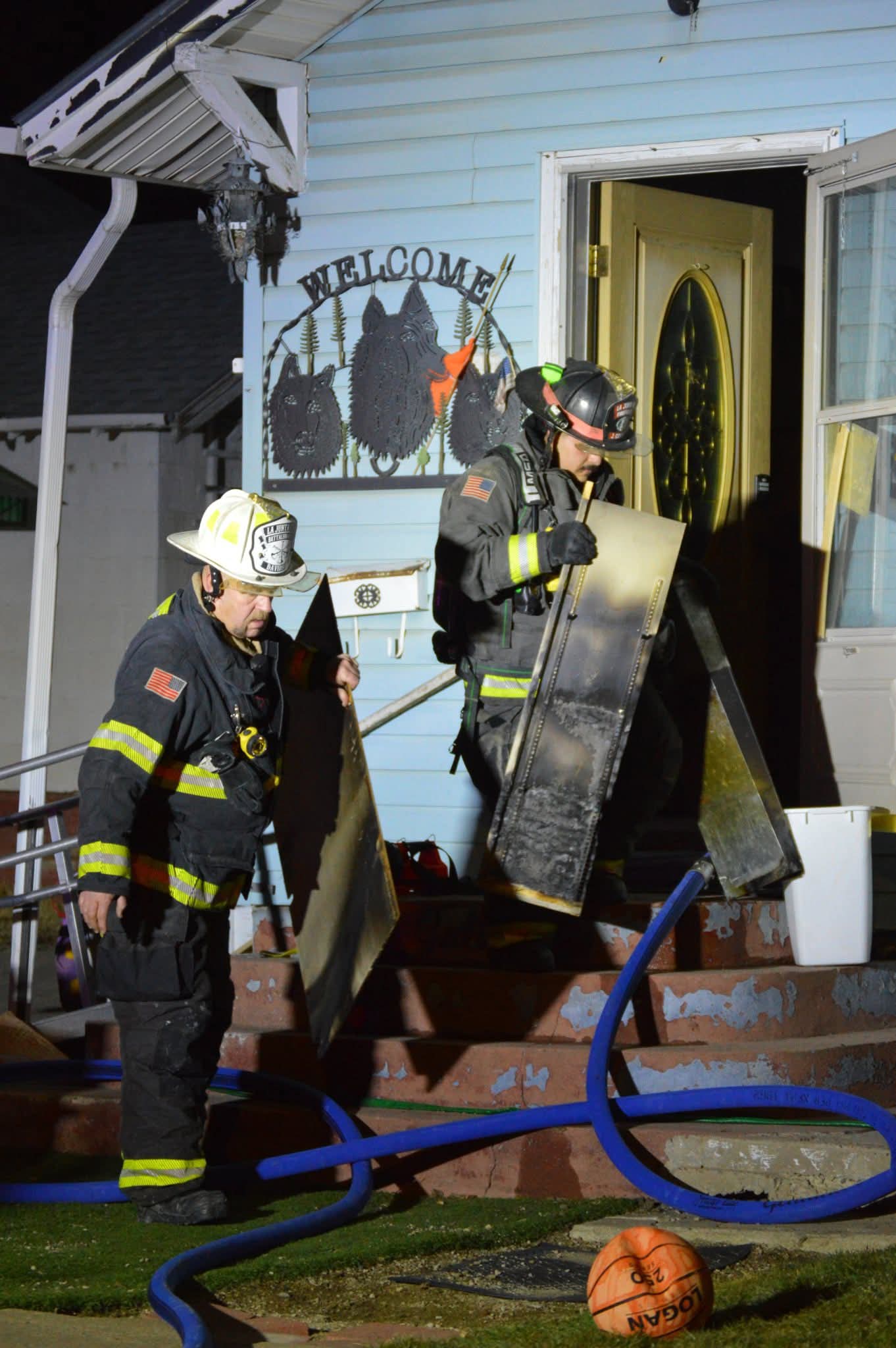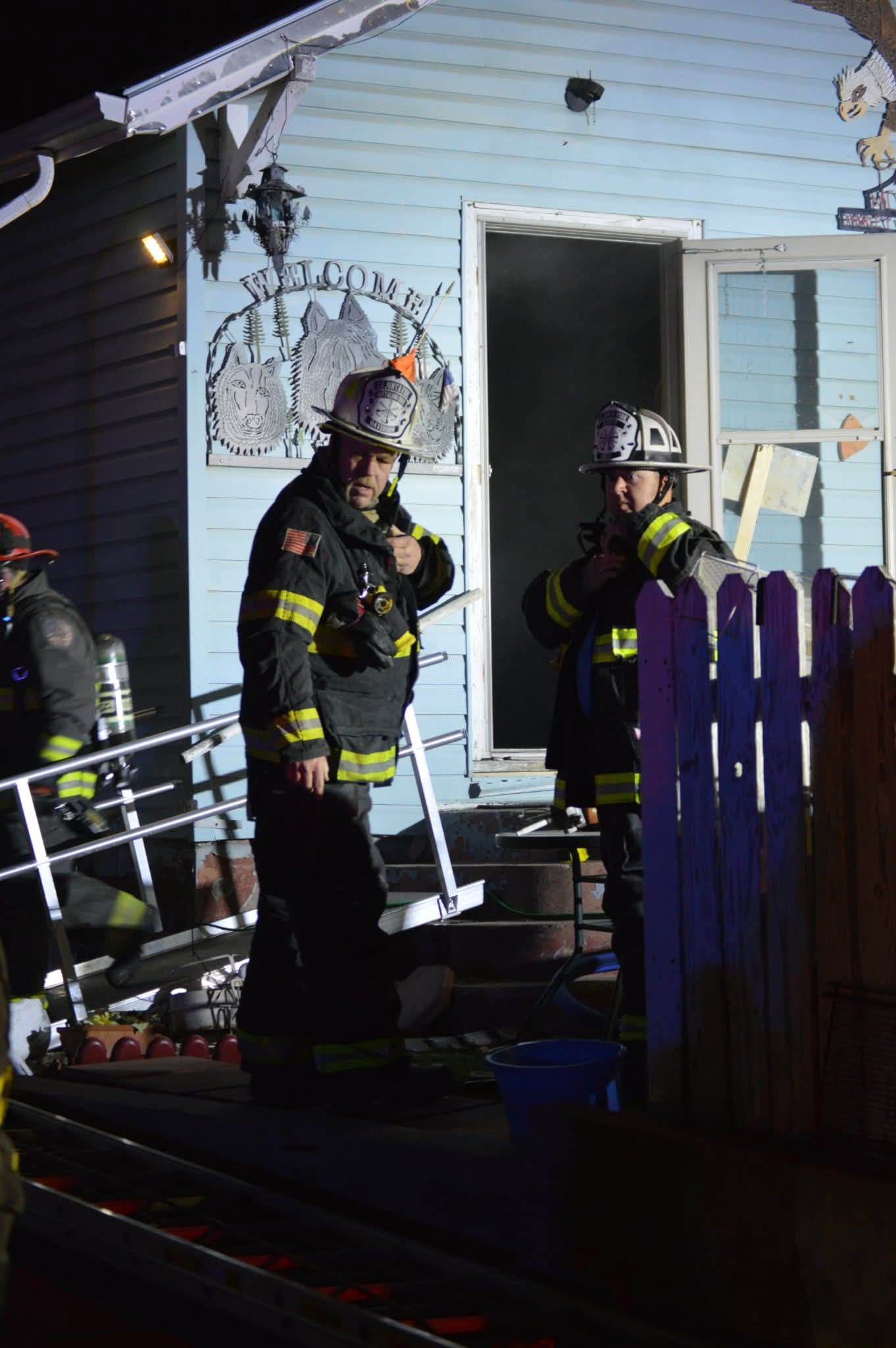 Overhaul began and crews removed the burned cabinets and wall to make sure there was not fire extension. Ventilation was completed as well to remove all the smoke.