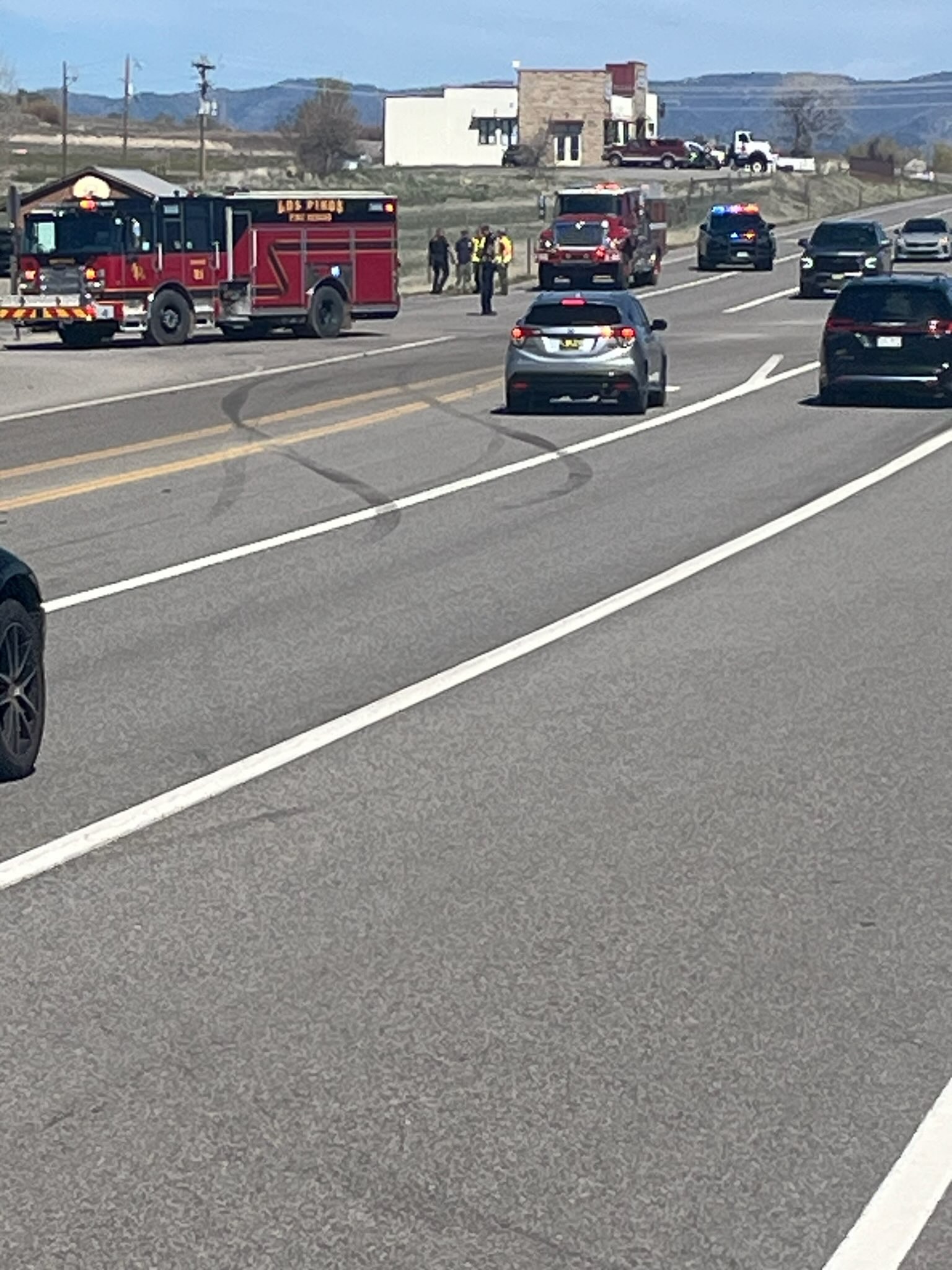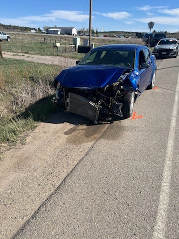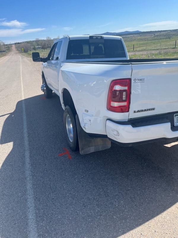 (COLORADO) – This afternoon at 3:14 p.m., Colorado State Patrol trooper Ziegler was traveling on Highway 172 through the intersection of La Plata County Road 311 in La Plata County, Colorado, when her patrol car was struck on the left-rear side by a blue Dodge sedan that failed to stop at a stop sign. Trooper Ziegler’s patrol vehicle then collided with a white Dodge truck before traveling off the south shoulder of Highway 172.