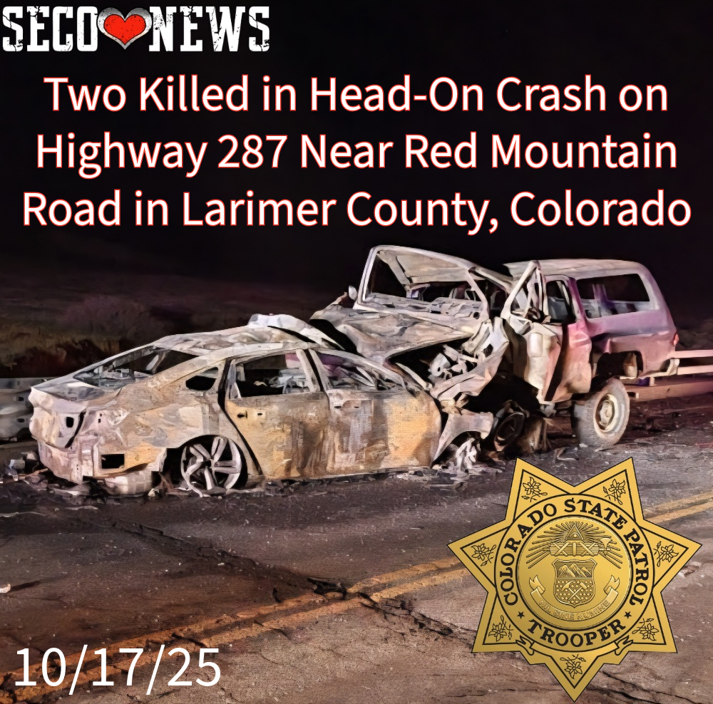Double Fatal Crash in Larimer County Highway 287 is closed in both directions (LARIMER COUNTY, COLO) - This evening on October 17, 2025, around 6:18 p.m., the Colorado State Patrol responded to a crash involving a 2018 Honda Accord and a 1987 Chev...