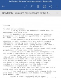 9-23-06 To whom it may concern: It is my pleasure to recommend Adrian Hart for employment with your firm. As publisher and general manager of Colorado Newspapers, Inc. I had the opportunity to supervise Mr. Hart. for 14 months. Adrian demonstrated...